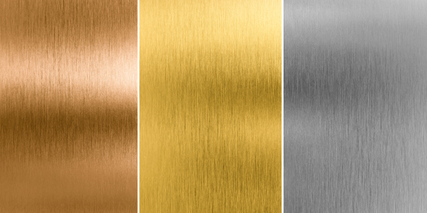 Acabamentos acetinados podem ser obtidos com escovação de metal, ou podem ser riscados com lixa ou outro material abrasivo em vez de escova de metal.as texturas são contínuas e parecem fios de cabelo, sua superfície não é reflexiva e opaca.