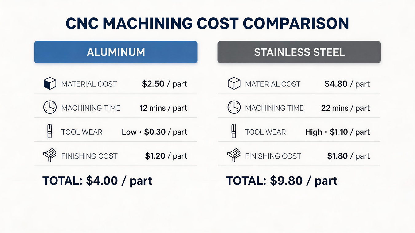 Cost is often the deciding factor when choosing between aluminum and stainless steel for CNC machining.