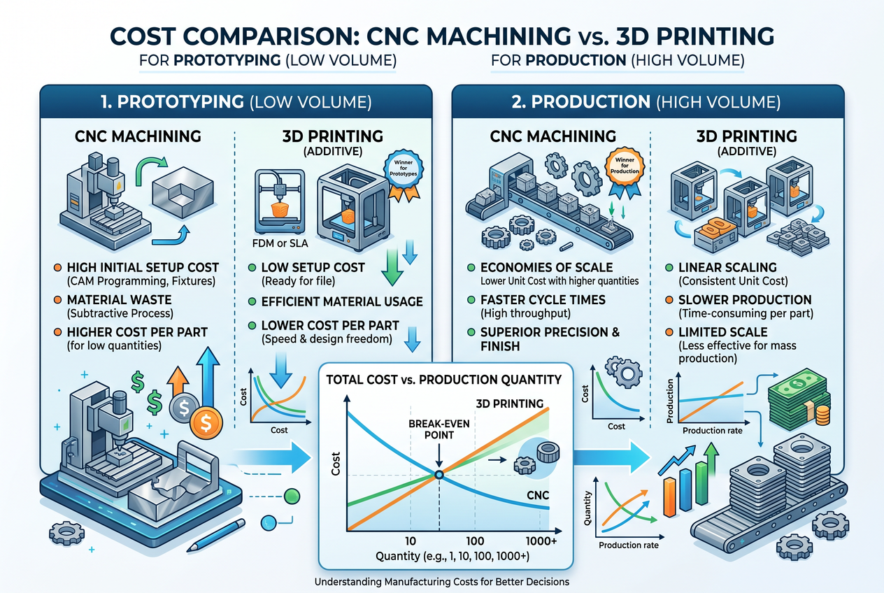 CNC vs 3D Printing — Quick Comparison