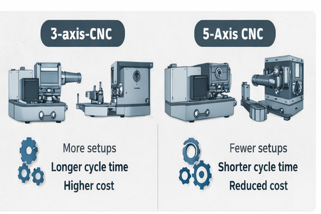However, higher hourly rate does not always mean higher total cost. A 5-axis machine may: