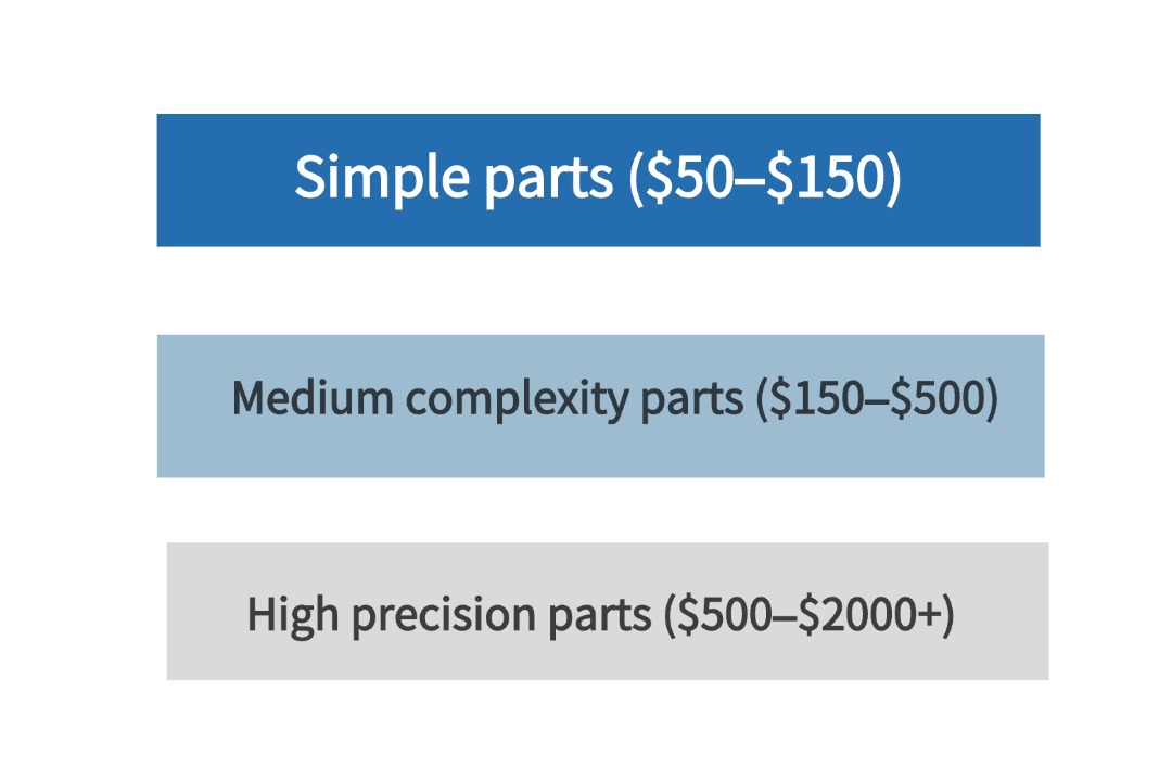 - Medium-complexity parts: $150 – $500 per part