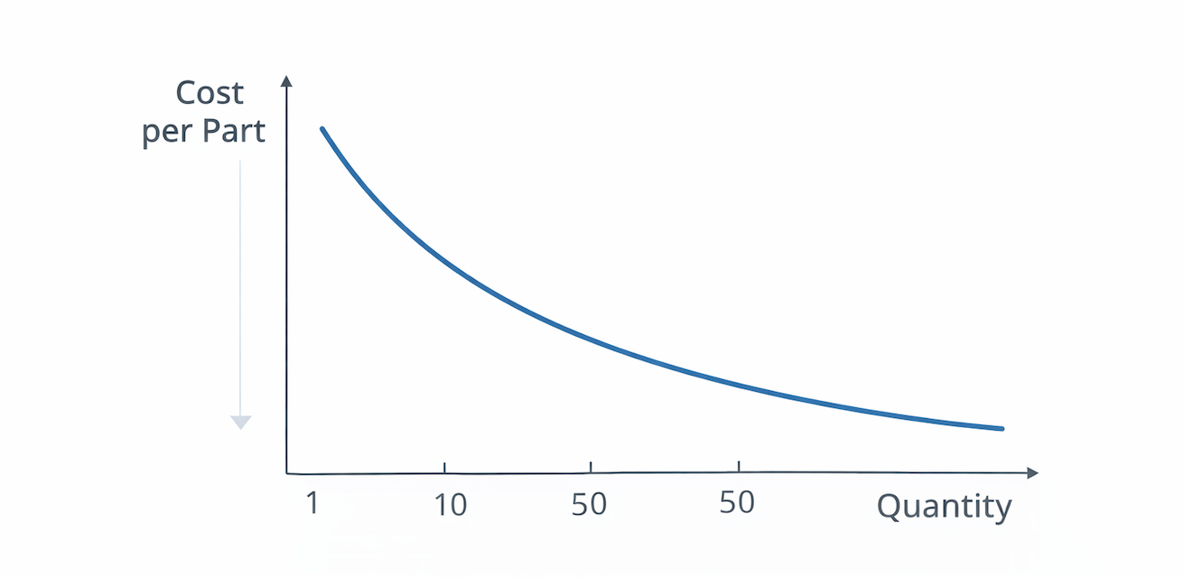 For prototypes, setup cost can represent 30–50% of total cost. Very low quantities often appear “expensive.”