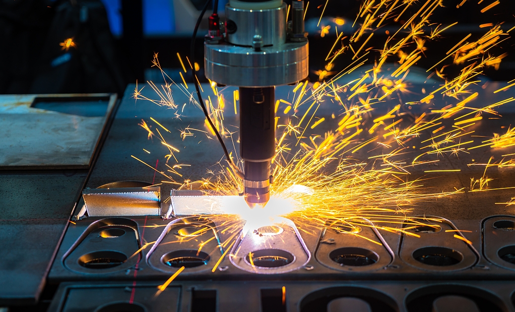 CNC plasma cutting machines are employed to cut materials using a high-powered plasma torch controlled by a computer. Similar in function to a handheld, gas-powered torch used for welding, plasma torches can achieve temperatures of up to 50,000 degrees Fahrenheit. The plasma torch melts through the work piece to create a cut in the material. It's important to note that anytime CNC plasma cutting is employed, the material being cut must be electrically conductive. Typical materials cut using CNC plasma cutting machines include steel, stainless steel, aluminum, brass, and copper.